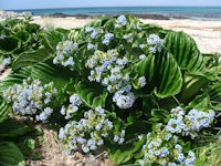 An iconic Chatham Island native. A beautiful flowering plant with glossy green grooved leaves. Flowing late September to November it has a blue flower arranged in a dense cluster changing to a lilac.